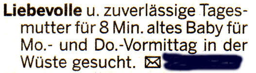 Kaum geboren, wird das Kind schon zur Betreuung weggegeben. Muss Mutter kurz nach der Niederkunft schon wieder malochen?