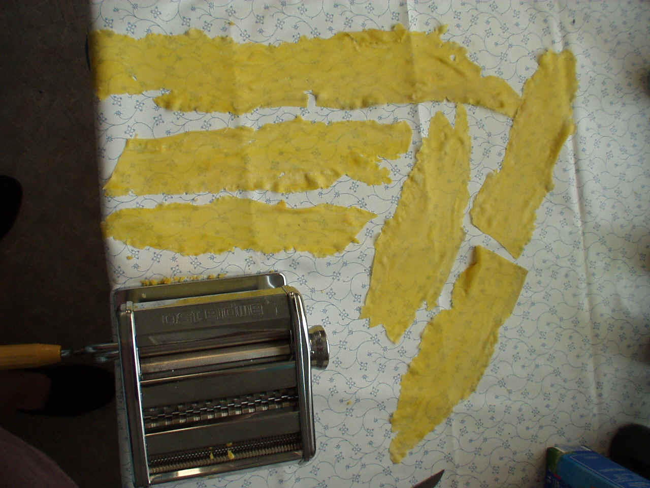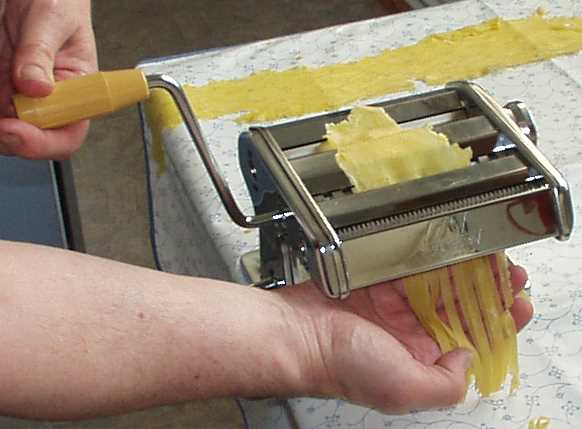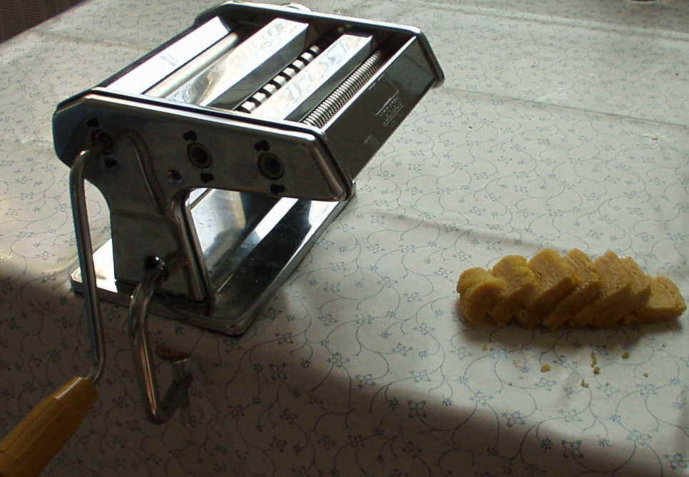 Jetzt kommt die Nudelmaschine zum Einsatz. Es gibt ganz
