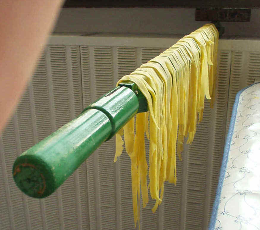 Die fertigen Nudeln jetzt vorsichtig über eine Stange