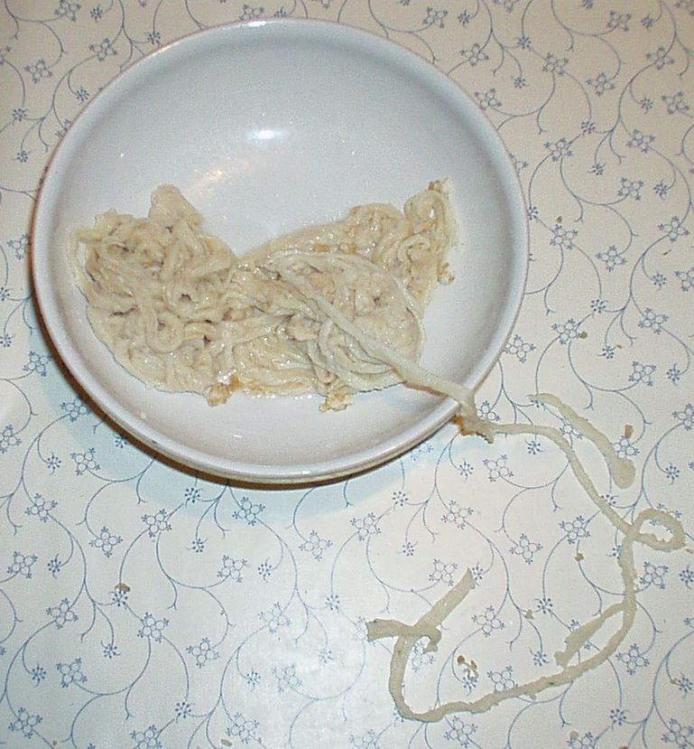 wie lang der Darm in der Schüssel ist. Es müssen Kilometer sein.