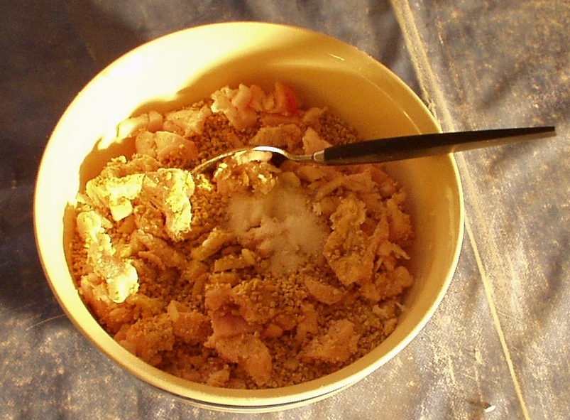 Masse in die Därme zu füllen. Dazu nehme ich einen Löffel.